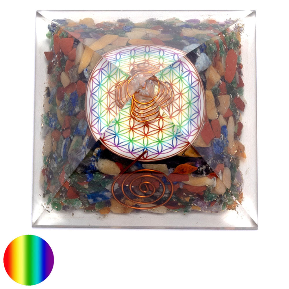Orgon EnergieOrgon besteht aus organischem und anorganischem Material und ist ist pure, vitale Lebensenergie, die überall in der Atmosphäre vorhanden ist. Diese Energie wird durch Harze, Metalle und Kristalle gebündelt und konzentriert wieder abgegeben. Die Form ist für die Funktion nicht wichtig. Die Wirksamkeit bestimmt die Zusammensetzung von organischem und anorganischem Material. Orgonit sollte eine hohe Dichte und viel Oberfläche aufweisen. Gewisse Formen die schon als Form eine hohe Energie aufweisen, können die Kraft von Orgon noch verstärken, wie z.B. Pyramiden.Orgon kehrt negative Energie in positive Energie um. Orgon Energie eignet sich hervorragend, um störende Umwelteinflüsse zu neutralisieren wie Strahlungen von Funkmasten, Mobile-Telefon, Internet , Wasseradern, , Elektrosmog usw. Messungen haben gezeigt, dass sich Handystrahlen in der Nähe von Orgonit mit einem Pendel nicht mehr feststellen lassen. Die Energie im Wohn- und Schlafbereich wird verbessert und die Strahlen vom Handy sollten mit einer Orgon-Unterlage im Schlafzimmer abgemildert werden.ChakrenDie feinstofflichen Energieströme im Körper kreuzen sich an bestimmten Knotenpunkten und bilden energetische Zentren – die Chakren. Es gibt sieben Hauptchakren und eine Vielzahl von Nebenchakren. Die Hauptchakren liegen entlang der Wirbelsäule und strahlen nach oben und unten bzw. nach vorne und hinten ab. Die Nebenchakren finden sich an unterschiedlichen Punkten des Körpers und in der Aura, unter anderem an Schultern, Händen, Knien und Füssen. Weitere Chakren wirken oberhalb des Kopfes und unterhalb der Füsse in den äusseren Auraschichten.Chakra ist Sanskrit und bedeutet: Rad, Kreis oder Diskus. Die Chakren befinden sich in ständiger Kreisbewegung, was bewirkt, dass Energie ins Innere der Chakren hineingezogen wird. Jedes Chakra schwingt in einer Farbe und hat einen körperlichen Bezug. Die unteren Chakren schwingen langsamer. Sie sind den Grundbedürfnissen und Emotionen zugeordnet. Die oberen Chakren schwingen höher und entsprechen den spirituellen Fähigkeiten.Das Reinigen und Aufbauen der Chakren gehört zu den Grundbedürfnissen des Menschen. Durch lichtdurchflutete Chakren erlangen wir psychisches und körperliches Wohlbefinden.