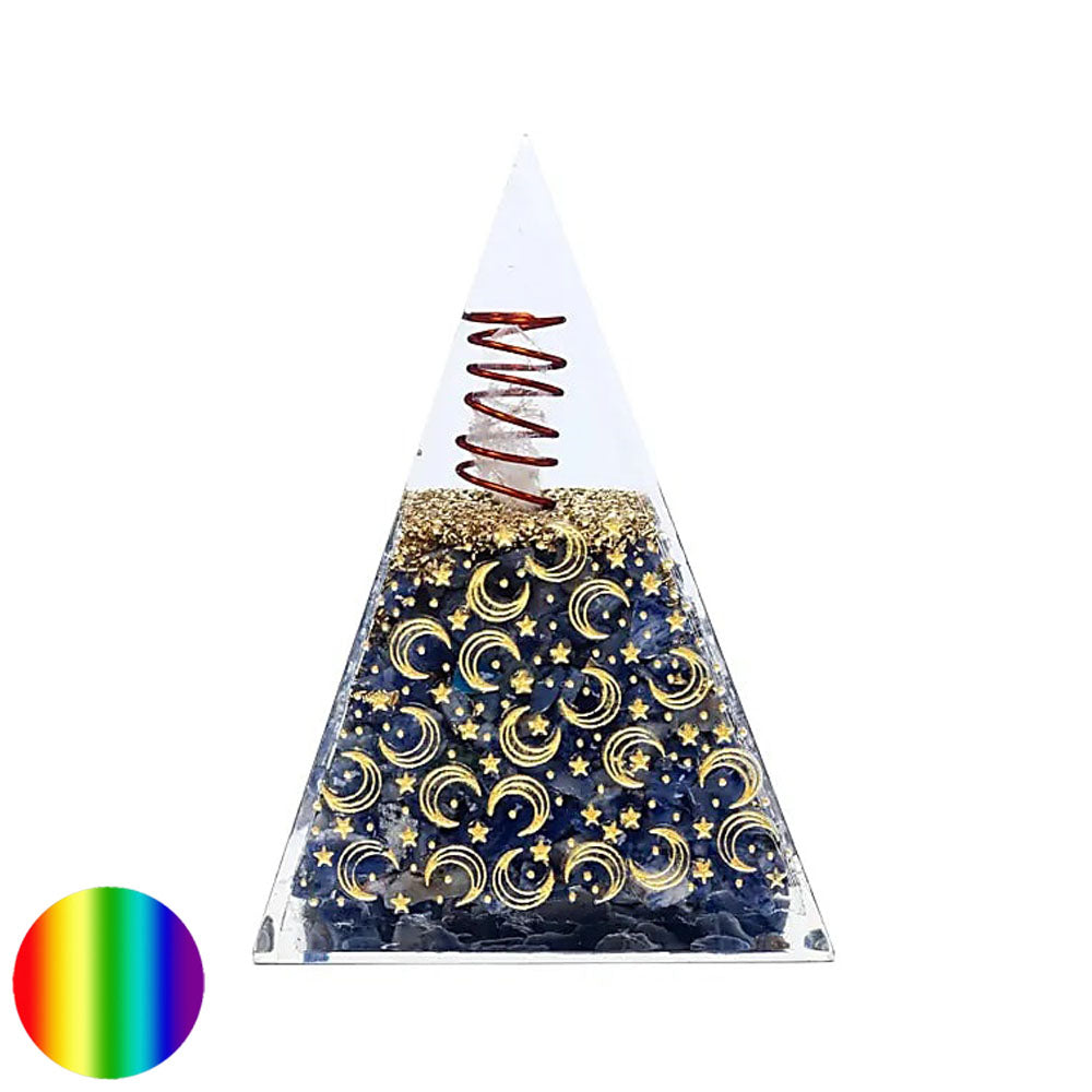 Orgon EnergieOrgon besteht aus organischem und anorganischem Material und ist ist pure, vitale Lebensenergie, die überall in der Atmosphäre vorhanden ist. Diese Energie wird durch Harze, Metalle und Kristalle gebündelt und konzentriert wieder abgegeben. Die Form ist für die Funktion nicht wichtig. Die Wirksamkeit bestimmt die Zusammensetzung von organischem und anorganischem Material. Orgonit sollte eine hohe Dichte und viel Oberfläche aufweisen. Gewisse Formen die schon als Form eine hohe Energie aufweisen, können die Kraft von Orgon noch verstärken, wie z.B. Pyramiden.Orgon kehrt negative Energie in positive Energie um. Orgon Energie eignet sich hervorragend, um störende Umwelteinflüsse zu neutralisieren wie Strahlungen von Funkmasten, Mobile-Telefon, Internet , Wasseradern, , Elektrosmog usw. Messungen haben gezeigt, dass sich Handystrahlen in der Nähe von Orgonit mit einem Pendel nicht mehr feststellen lassen. Die Energie im Wohn- und Schlafbereich wird verbessert und die Strahlen vom Handy sollten mit einer Orgon-Unterlage im Schlafzimmer abgemildert werden.SpiraleDie Spirale ist das Symbol für Kontinuität des Fortschrittes und der unendlichen Bewegung. Die physische und die spirituelle Energie fliesst spiralförmig.Dreht die Spirale im Uhrzeigersinn nach aussen steht sie im Buddhismus für eine Entwicklung hin zu Bewusstheit und Erleuchtung. Der Nabel wird als Zentrum der Kraft in der menschlichen Lebensspirale begriffen.Dreht die Spirale gegen den Uhrzeigersinn nach aussen, symbolisiert sie die Geburt, das Leben und die Bewegung nach Aussen. Sie zeigt Fortbewegung, Entfaltung, sich entwickeln, sich dem Leben zuwenden. In der Symbolik steht sie für die Kontinuität des Fortschritts.SodalithDer Sodalith fördert das logische Denken und die Intuition. Er verhilft zu Ausdauer, Mut und steigert das Selbstbewusstsein. Der Sodalith löst emotionale Blockaden und fördert den inneren Frieden, indem er negative Gedankenmuster auflöst. Er hilft durch mehr Klarheit sowie Aufrichtigkeit die eigenen schlechten Gewohnheiten, Schuldgefühle oder Ängste abzulegen und unterdrückte Gefühle zu befreien. Der Sodalith kann aber auch die Denkkraft erhöhen und Inspiration sowie Begabung fördern, um die Entwicklung der künstlerischen Fähigkeiten zu unterstützen. Die beruhigende Energie hilft, Stress abzubauen und die Erdung zu fördern. Er schützt vor emotionalen Verletzungen und unterstützt den Träger in herausfordernden Zeiten gelassen zu bleiben.